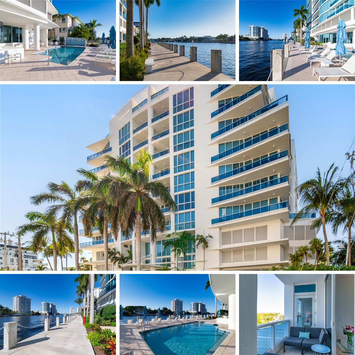 Lovely residence with sweeping views of the Intracoastal Waterway, Sunrise Bridge, and Bonnet House Gardens. This bright, airy unit features elegant marble floors throughout and a versatile den with full ensuite bath and closet, easily convertible to a third bedroom. The chef’s kitchen is a $70,000 upgrade with Intracoastal views, Sub-Zero refrigerator, modern appliances, custom maple cabinetry with imported Austrian veneer, quartzite countertops, and a mother-of-pearl backsplash. Spacious living and dining areas offer an active water view. Split-bedroom layout provides privacy with ensuite baths, walk-in closets, and soundproof party walls. Includes 2 premium deeded corner parking spaces. North-facing exposure delivers abundant natural light without harsh sun for quiet coastal enjoyment.